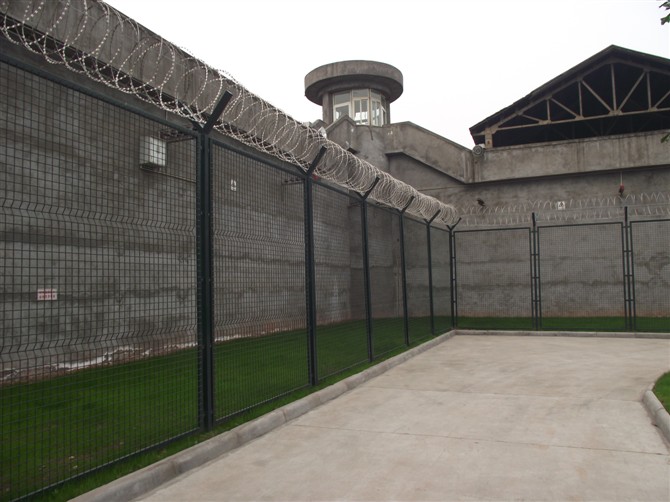 接下來(lái)普及一下監(jiān)獄鍍鋅鋼網(wǎng)墻的一般標(biāo)準(zhǔn),網(wǎng)片及V型網(wǎng)的網(wǎng)孔其相鄰橫絲間距不得大于10cm,豎絲間距不得大于5cm,網(wǎng)片與立柱之間的縫隙不得大于2mm,網(wǎng)片離地間距不得大于2cm。焊接網(wǎng)片的鋼絲直徑必須大于等于5mm。立柱應(yīng)采用60*60mm方管制成,管壁厚度不得低于2mm,立柱及網(wǎng)片的表面防腐年限不能低于8年。監(jiān)獄隔離網(wǎng)具有防攀爬、抗沖擊、抗剪切特性和良好的震懾作用,專用于監(jiān)獄看守所、警戒線軍事基地等場(chǎng)所。