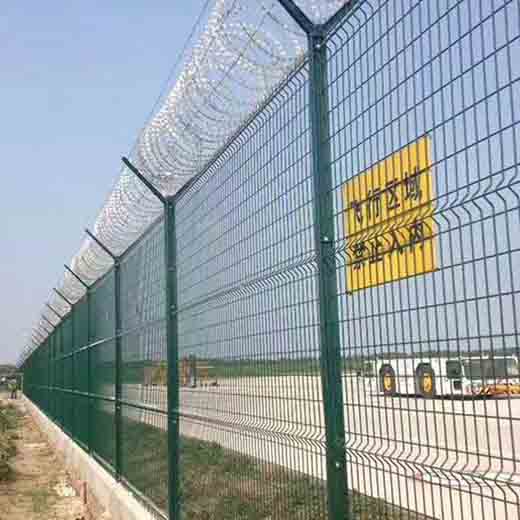 機(jī)場(chǎng)是一個(gè)對(duì)安全性要求高的場(chǎng)所,所以防護(hù)欄對(duì)于機(jī)場(chǎng)而言就是牢固的外墻, 圍界隔離網(wǎng)又稱(chēng)作“Y型安全防御護(hù)網(wǎng)”,是由折彎網(wǎng)片,V型支架立柱,加強(qiáng)型焊接片網(wǎng),上面有刀片刺繩(又稱(chēng)刀片網(wǎng),刀片護(hù)欄)安全防盜連接件組成強(qiáng)度和安全防御性級(jí)別很高。被廣泛應(yīng)用在機(jī)場(chǎng),基地等安全場(chǎng)所。