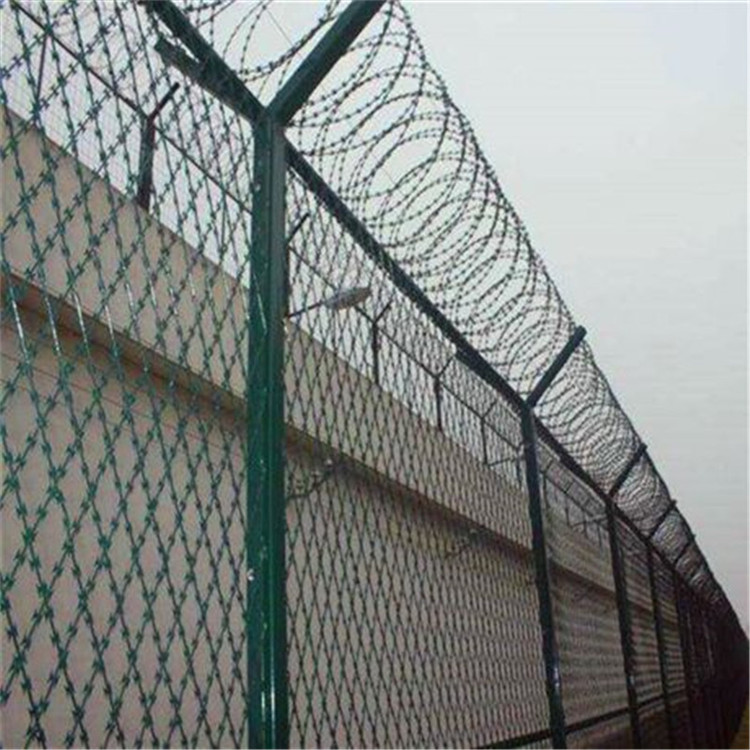 監(jiān)獄圍欄網(wǎng)具有防腐、防老化、抗曬、耐候等特點(diǎn)。螺旋型交叉刀片刺網(wǎng)是在兩條刀片刺網(wǎng)之間以不銹鋼片和鍍鋅鋼片強(qiáng)力夾扣,展開后即呈交叉狀,美觀又實(shí)用。