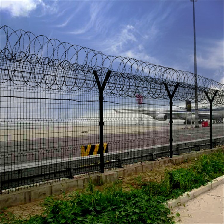 機(jī)場(chǎng)圍欄網(wǎng)是由安全防盜連接件和熱鍍鋅刀片刺籠組成的,具有高強(qiáng)度和高安全防御性的隔離柵產(chǎn)品。近年來(lái),機(jī)場(chǎng)圍欄網(wǎng)已被廣泛應(yīng)用于機(jī)場(chǎng)、軍事基地等高安全場(chǎng)所。在機(jī)場(chǎng)圍欄網(wǎng)頂部加裝刀片刺絲、刀片刺繩后,可有效增強(qiáng)安全防護(hù)性能。