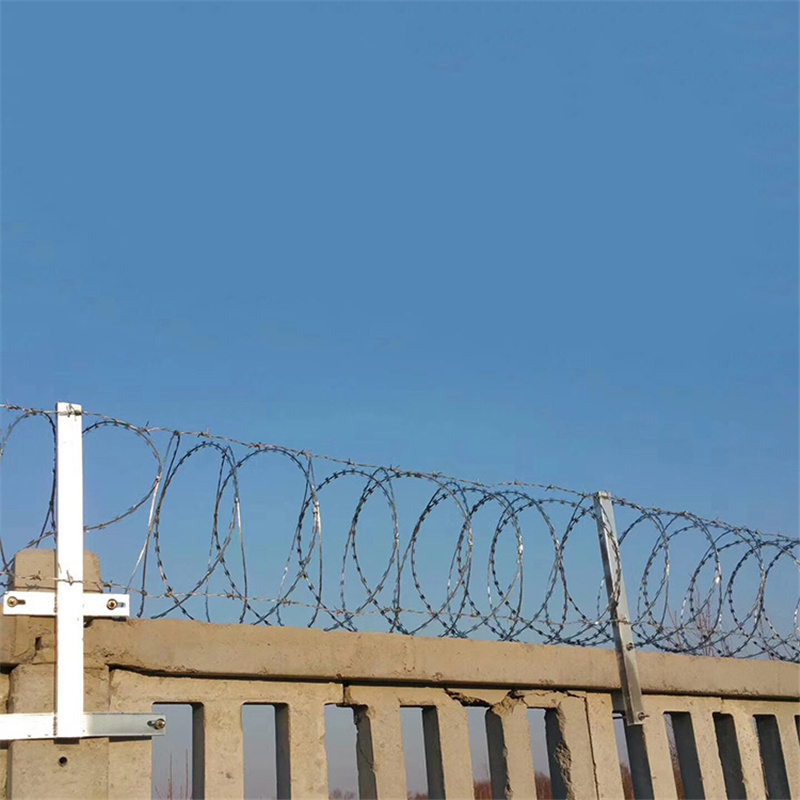 刀片刺繩的安裝要求: 1 、刀片刺繩防護柵欄安裝時做到:嚴、齊、順、美,橋下封閉不得留有空隙,柵欄方向沿橋梁方向順直。 2 、柵欄安裝時,應對柵欄兩側地面進行平整壓實,當柵欄設置在坡地或柵欄兩側存在高低差時,應將柵欄兩側范圍高出部分進行平整,保證柵欄對于兩側地面均達到防護高度。 3 、刀片刺繩與線路防護柵欄連接橋下防護柵欄應與線路防護柵欄進行緊密順接,防止先接觸出現(xiàn)較大間隙。