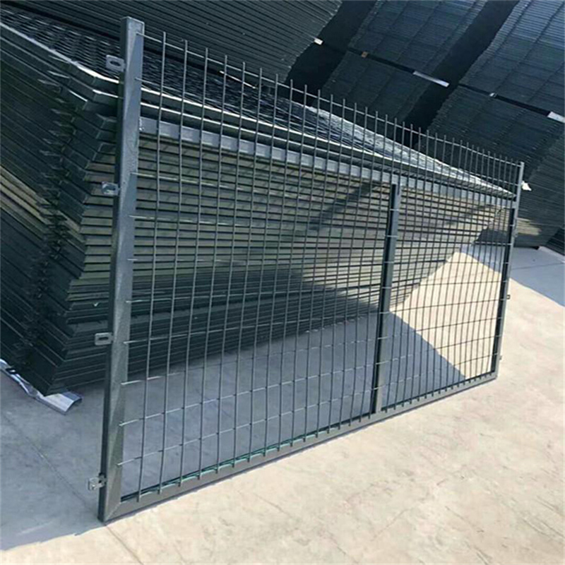 鐵路兩側(cè)防護(hù)柵欄為冷拔鋼絲點(diǎn)焊熱浸塑網(wǎng)片,外型尺寸為2760*1790mm,網(wǎng)格尺寸為75*150mm,鋼絲為φ4mm , 網(wǎng)片邊框采用20*30*1.5mm的方管焊接而成,網(wǎng)片連接片由40*40*4mm鋼片制作,防盜螺栓的螺柱、螺帽、墊圈等作熱鍍鋅處理。鐵路兩側(cè)防護(hù)柵欄網(wǎng)片表面采用熱浸塑處理,顏色為墨綠色,整個(gè)結(jié)構(gòu)表面平整光滑,色澤均勻,無(wú)漏鍍、開裂、脫皮及脫落等缺陷。網(wǎng)片浸塑所用的材料及PE表層環(huán)保性好,無(wú)污染。