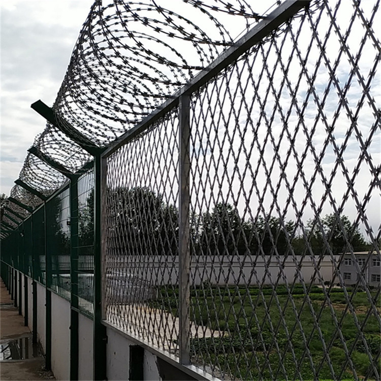 警戒線隔離網(wǎng)又分為:監(jiān)獄鋼網(wǎng)墻、梅花刺片隔離網(wǎng)、刀刺隔離網(wǎng)、長方孔隔離網(wǎng)、斜方孔隔離網(wǎng)、鋅鋼隔離網(wǎng)等,常用在監(jiān)獄、看守所、邊防等重地,屬于高安全場地用防護網(wǎng)。除去本身規(guī)格質(zhì)量要求較高以外,表面**腐蝕方式也很重要,直接關(guān)系到監(jiān)獄鋼網(wǎng)墻的使用年限和維修保養(yǎng)費用。監(jiān)獄鋼網(wǎng)墻由刀片刺網(wǎng)和圍欄網(wǎng)組合使用,刀片刺網(wǎng)有熱鍍鋅刀刺網(wǎng)和不銹鋼刀刺網(wǎng),都是防護效果很好的產(chǎn)品,其中不銹鋼刀刺網(wǎng)比熱鍍鋅刀刺網(wǎng)價格較高,相應(yīng)的防腐蝕效果、光亮度、材質(zhì)都要比熱鍍鋅刀刺網(wǎng)要好。