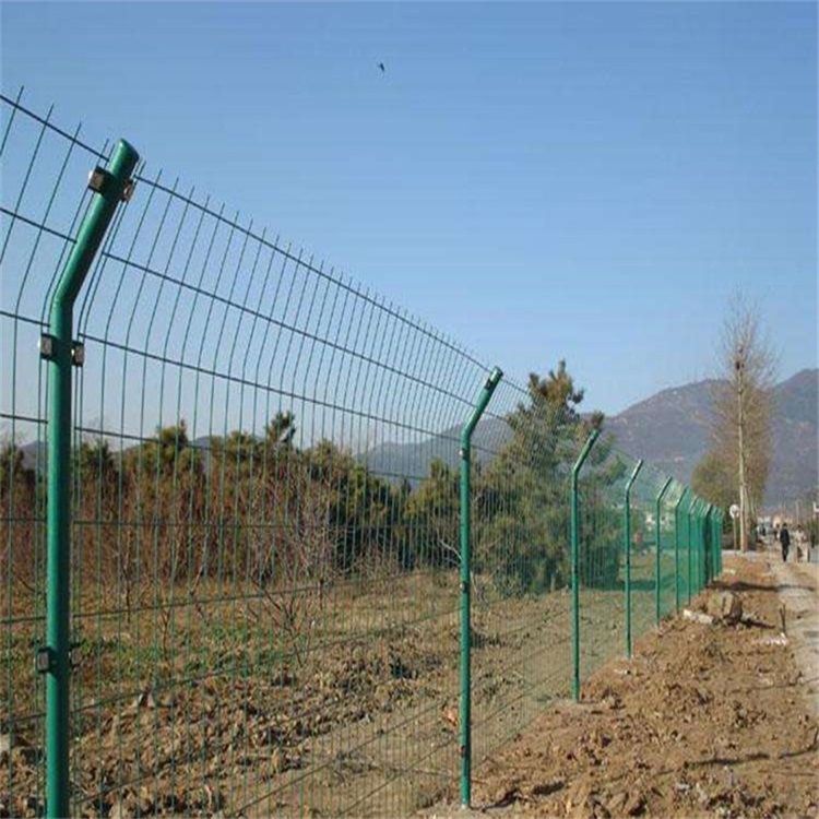 框架護(hù)欄網(wǎng)?:帶邊框的護(hù)欄網(wǎng),增加了其堅固度與承受能力,常見于高速公路邊上,多為綠色,頂部有30公分的30°折彎,起到防攀爬作用。