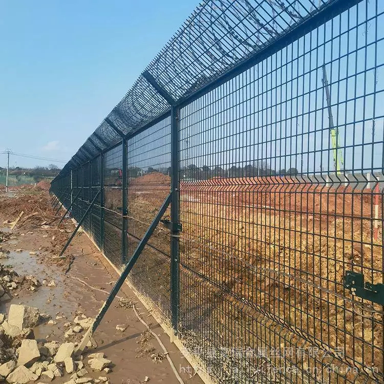 機(jī)場辦公區(qū)圍界網(wǎng) 機(jī)場圍界圍欄網(wǎng) 機(jī)場防護(hù)圍界網(wǎng)在行業(yè)中又稱作“Y型安全防御護(hù)網(wǎng)”,其組成是由V型支架立拄,加強(qiáng)型焊接片網(wǎng),安全防盜連接件和熱鍍鋅刀片刺籠組成,是強(qiáng)度和安全防御性級(jí)別很高的護(hù)欄網(wǎng)產(chǎn)品。在安裝后的檢測:機(jī)場護(hù)欄網(wǎng)完成后用垂球檢測護(hù)欄網(wǎng)立柱,檢測完后填豎直度數(shù)據(jù),