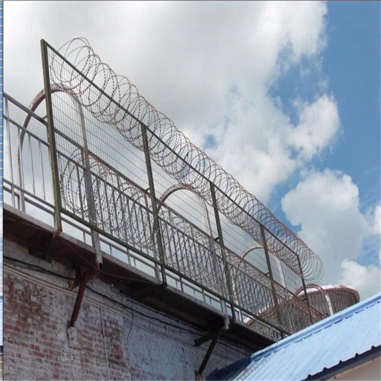 監(jiān)獄隔離網(wǎng)螺旋式刀刺網(wǎng)可以在一定范圍內(nèi)自 由拉伸覆蓋距離的特點,我們很難界定它的防護級別能不能達標(biāo),近年來,我國大部分地區(qū)也漸漸統(tǒng)一了刀刺網(wǎng)的拉伸間距,一般為10-15cm, 這樣的拉伸密度才適合監(jiān)獄的安全要求。然后就是監(jiān)獄隔離網(wǎng)和立柱的表面防腐處理,整體采用除銹+防腐+浸塑的防腐工藝。專用PVC 塑粉,一般上塑量≥0.8mm,表面無真空、開裂、漏塑、塑液流淌等不良現(xiàn)象,顏色通常為草綠色、墨綠色和白色。