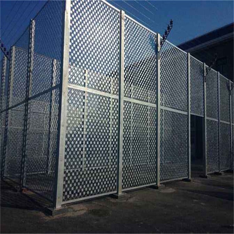 監(jiān)獄隔離網(wǎng)由網(wǎng)片,立柱,刀刺網(wǎng)組合而成,監(jiān)獄隔離網(wǎng)網(wǎng)片通常四周焊接邊框以增加整體的剛度和防護力度,網(wǎng)孔以50x200mm, 50x100mm的長方孔和50x50mm的正方孔為常見,材料多為直徑為5.0mm, 6.0mm的低碳鋼絲或鍍鋅絲焊接而成,四周的邊框一般為方鋼, 規(guī)格可根據(jù)實際的網(wǎng)片大小而定,如20x30mm,30x30mm,40x40mm, 30x50mm等 ,邊框的左右兩側(cè)一般會焊接側(cè)邊耳鋼板,以便于和兩側(cè)的立柱相連接。