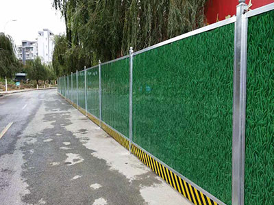 圍擋基腳采用M10水泥砂漿砌筑MU10頁(yè)巖磚磚砌0.5*0.5的基礎(chǔ),用于增強(qiáng)圍擋抗風(fēng)穩(wěn)定性;pvc圍擋設(shè)2.5米高,寬3米為一板。施工圍擋做美化處理,噴涂企業(yè)名稱、安全、質(zhì)量、文明施工用語(yǔ)及開發(fā)項(xiàng)目商業(yè)廣告,嚴(yán)禁張貼、涂寫垃圾廣告。