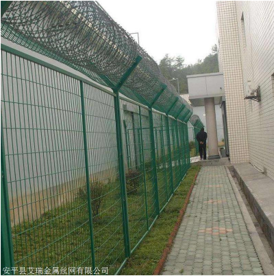 監(jiān)獄也需求隔離網(wǎng)進行防護,但監(jiān)獄所需求的護欄網(wǎng)是防護性較高的護欄網(wǎng)。監(jiān)獄鋼網(wǎng)墻又稱作監(jiān)獄隔離網(wǎng),主若是選用高強度的刀片刺網(wǎng)與尋常防護網(wǎng)的融合,由V型支架立拄,加強型焊接片網(wǎng),平安防盜連接件和刀片刺網(wǎng)構(gòu)成。刀片刺網(wǎng)是一種新型防護網(wǎng),由銳利尖角鍍鋅鋼板或不銹鋼薄板做刀片,鋼絲做芯線組合而成的防護器械。