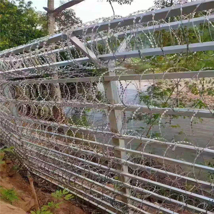 直條型刀片刺網(wǎng)表面防腐處理有電鍍鋅、熱鍍鋅以及鍍鋅噴塑(顏色隨意選擇),根據(jù)客戶的要求,做不同的處理。其主要用于監(jiān)獄護(hù)欄網(wǎng)、軍事護(hù)欄網(wǎng)、機(jī)場護(hù)欄網(wǎng)、小區(qū)防盜網(wǎng),與其他護(hù)欄網(wǎng)相結(jié)合防護(hù)作用會更佳。