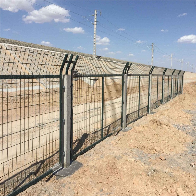 鐵路防護欄 鐵路防護圍欄 高速鐵路護欄網(wǎng)的規(guī)格:網(wǎng)高x網(wǎng)寬(中心距) :1.797米x2.76米; 1.7米×2.76米;常規(guī)立柱要求: 水泥立柱或者鋼立柱