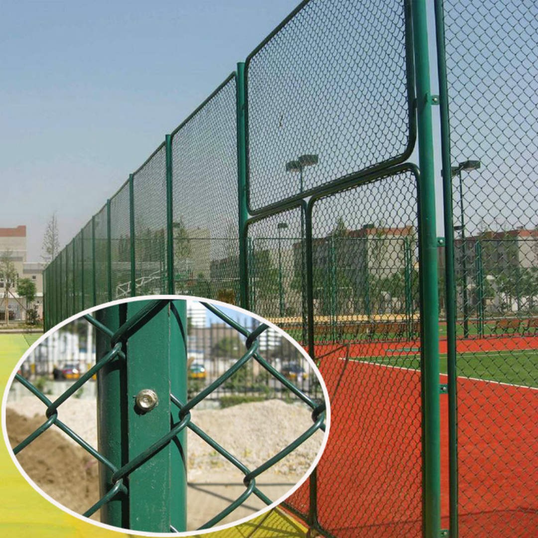 第一種方式無邊框:鋼筋+U型卡連接護欄網(wǎng)這種是如今體育圍網(wǎng)最常用的組裝方式,把勾花網(wǎng)用鋼筋支撐成一個長方形;然后將這些支撐鋼筋安裝到體育圍網(wǎng)的圍柱上面,圍柱上面焊接好了連接鋼筋的U型卡,把鋼筋放進U型卡中然后用螺絲固定即可。