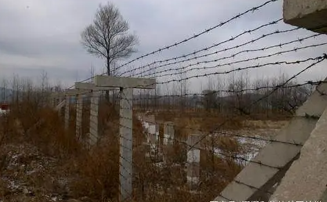 鐵絲網(wǎng)總體應(yīng)達(dá)到樁正線直,基礎(chǔ)穩(wěn)固,間隔均勻,網(wǎng)面平順,加固措施完善,整體抗力強(qiáng),美觀實(shí)用的要求,鐵絲網(wǎng)下面如有沖溝、水溝、涵洞等易鉆越通道,應(yīng)進(jìn)行避讓、填平或加裝防護(hù)欄,為方便執(zhí)勤巡邏和邊境作業(yè),應(yīng)根據(jù)邊防部隊(duì)需要預(yù)留通道并安裝進(jìn)出門。如江水和岸邊道路相接而無法建設(shè)“T”型樁鐵絲網(wǎng)時(shí),應(yīng)安裝倒“L”型方鋼樁邊境鐵絲網(wǎng),具體技術(shù)標(biāo)準(zhǔn)要求為: