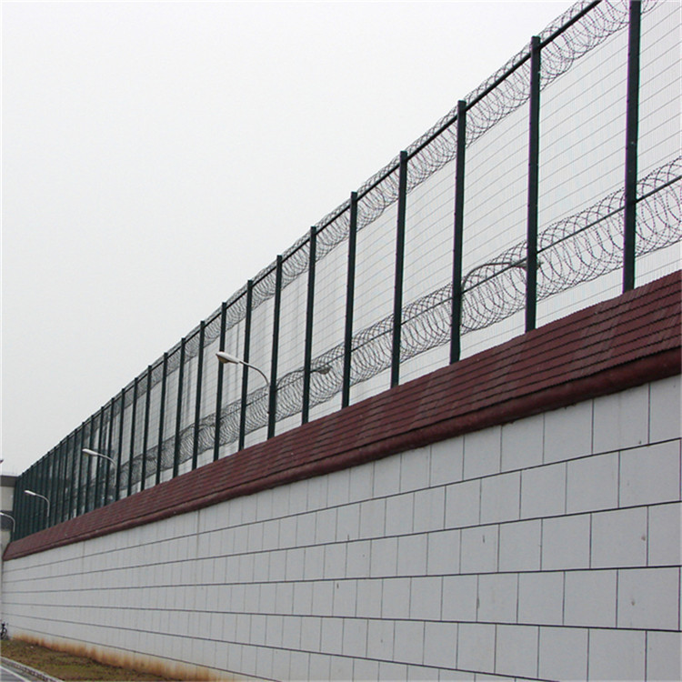 安裝的鋼網(wǎng)墻一般在5米高左右,內(nèi)外兩層,在兩層中間可加裝刀刺網(wǎng),作用是起到防攀爬。