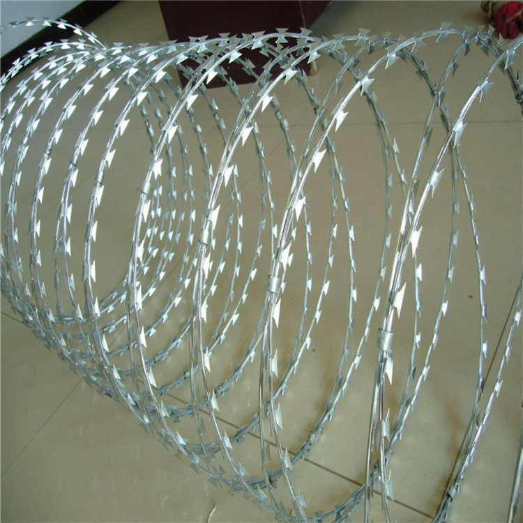 蛇腹形刀刺網(wǎng)施工主要包括以下內(nèi)容:清理場地確認(rèn)硬化程度可直接安裝支架底盤、安裝支架、拉線布置、蛇腹形刀刺網(wǎng)安裝。