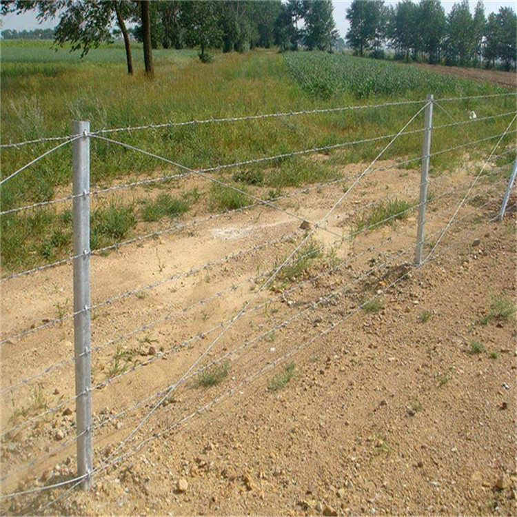 聯(lián)鋼絲、花蘭螺栓、綁扎鋼絲等組成。立柱采用槽鋼立柱,刺鋼絲網(wǎng)與槽鋼之間通過(guò)鋼掛鉤連接,鋼絲采用q2.5鋼絲,立柱間距為3米每隔30米設(shè)置一處兩向斜撐每隔90米設(shè)置一個(gè)三向斜撐。