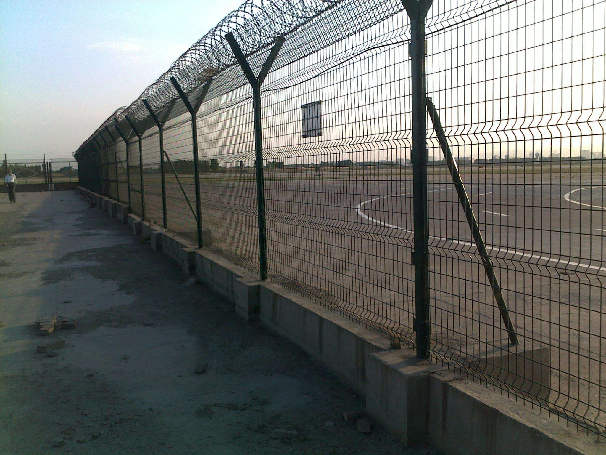 機場圍網(wǎng)是用于飛機場周邊起安全防范的一種護欄網(wǎng)。機場防護網(wǎng)造型一般為Y字形,它在原有的基礎(chǔ)上加裝了刀片刺繩,大大增加了安全防范性能。網(wǎng)片結(jié)構(gòu)簡練便于運輸。采用電鍍、熱鍍、噴塑、浸塑等防腐形式,具有很好的抗老化、抗曬、耐腐蝕等特點。機場圍網(wǎng)的安裝不受地形起伏限制,多彎道地帶適應(yīng)性極強。我們廠家專業(yè)生產(chǎn)機場圍網(wǎng),各種鋼網(wǎng)墻。如有需要,歡迎來電咨詢。