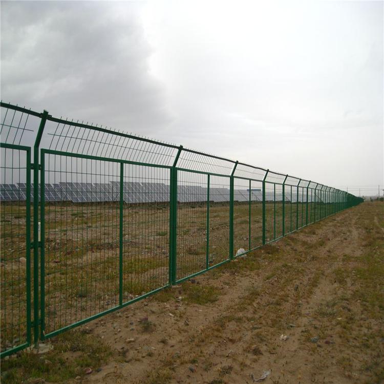 5.圍網(wǎng)網(wǎng)格尺寸170*85,鐵絲直徑浸塑4mm,鋼管直徑50mm,壁厚不小于2mm。外傾防攀爬角度30度。