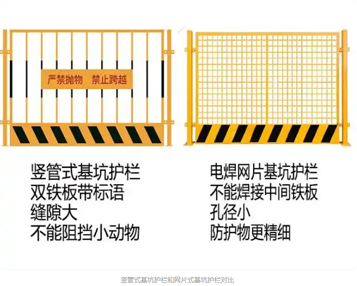 具體選擇豎管樣式基坑護(hù)欄還是網(wǎng)片基坑護(hù)欄,這個(gè)要根據(jù)自己的實(shí)際需求,其實(shí)這兩種樣式的基坑護(hù)欄都已經(jīng)滿足了防護(hù)需求。豎管縫隙大,不能攔截小型動(dòng)物,而網(wǎng)片基坑可以。
