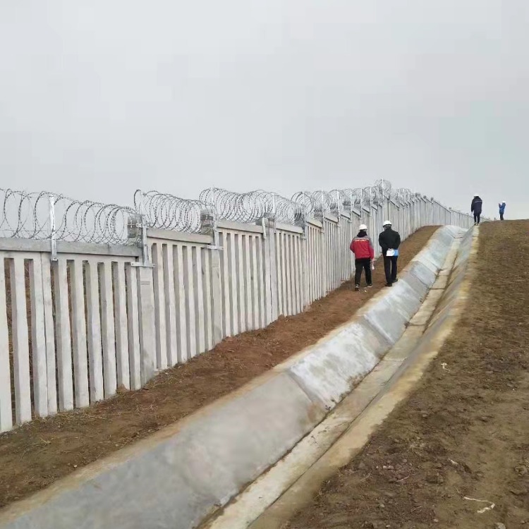 鐵路刺絲滾籠防護柵欄主要包括刀片刺網,刺繩,和文架及卡扣等,安裝好后具有很好的阻嚇效果,與能起到相同作用的產品比起來性價比是高很多的。主要制作工藝就是由熱鍍鋅鋼板或者不銹鋼鋼板沖壓出尖銳的刀片,然后由高張力鍍鋅鋼絲或者不銹鋼絲來做芯線組合構成的防護產品。配合立柱支架、加密支架、臺階支架安裝在水泥立柱上起到固定的作用,一般間隔3米安裝一個。
