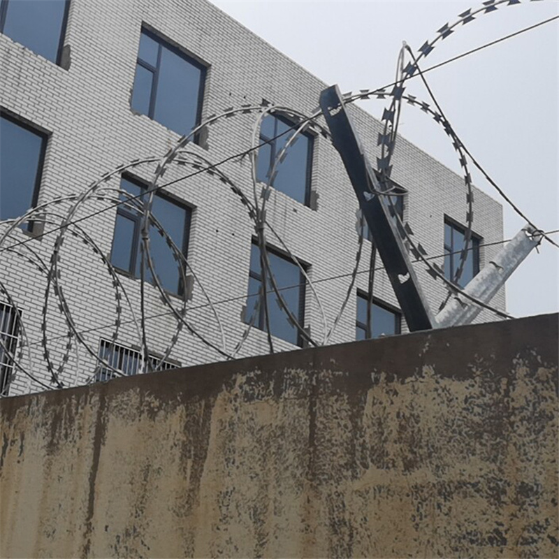 圍墻為了起到防盜的作用也是有很多的變化,從最開始在上面布置玻璃碎片到現(xiàn)在使用刀片刺繩等等,更加簡單更加強悍的防護效果保障了公民的生命和財產(chǎn)安全,說一下刀片刺繩的安裝方法:刀片刺繩每2圈有3-7個卡扣,而且是圈圈相卡,拉開以后形成螺旋狀,拉伸的時候注意一定要帶防護手套,預防劃傷。拉開的時候只需要固定刺網(wǎng)的一邊,然后向相反方向拉開就行,注意孔的間距不要太大,不然影響美觀效果。收的時候只要慢慢的送回去就行,操作簡單,施工便利。