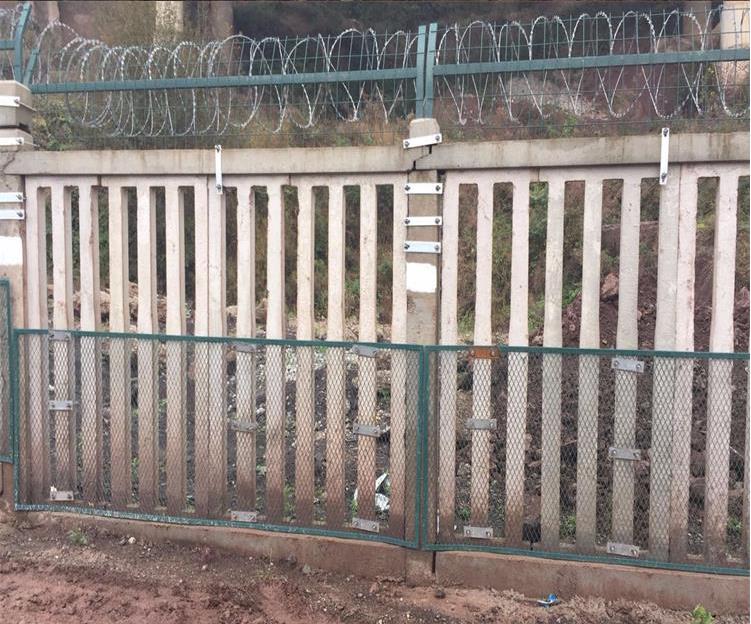 1、網(wǎng)片規(guī)格:高1.1m金屬浸塑網(wǎng)片,網(wǎng)片令拔絲直徑不小于3.5mm,鐵路混凝土立柱加高網(wǎng),浸塑厚度不小于0.3mm;每個(gè)網(wǎng)格高不大于10cm,寬不大于5cm。