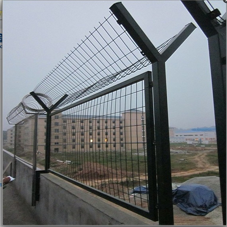 整體全部采用鍍鋅材質(zhì)浸塑或者靜電噴涂。連接方式網(wǎng)片邊框打孔。立柱焊接邊耳用鍍鋅或不銹鋼螺絲連接。監(jiān)獄隔離網(wǎng)立柱頂部加焊大V字型網(wǎng)片,用來(lái)支撐蛇腹型刀刺網(wǎng),這樣組裝起來(lái)的監(jiān)獄隔離網(wǎng)堅(jiān)不可摧。