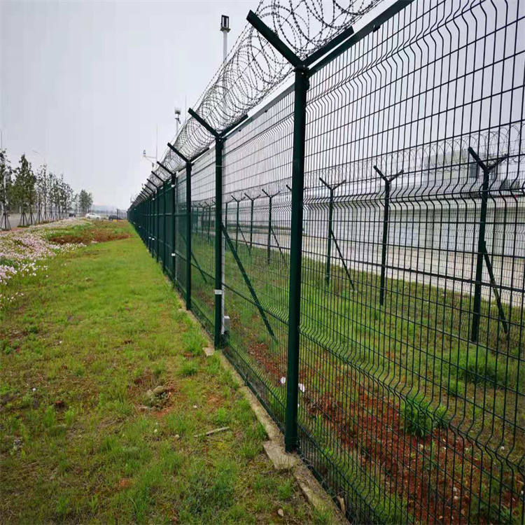 機(jī)場隔離柵具有很多優(yōu)點(diǎn),機(jī)場隔離柵產(chǎn)品的網(wǎng)格結(jié)構(gòu)十分簡練,外形美觀實(shí)用;機(jī)場隔離柵質(zhì)量很輕便于運(yùn)輸,施工方便,機(jī)場隔離柵安裝不受地形變化的限制,節(jié)省人力物力;機(jī)場隔離柵特別適用于山地、坡地以及多彎地區(qū);機(jī)場隔離柵產(chǎn)品的價(jià)格合理,屬于中等偏低類型,因此適合大面積使用。產(chǎn)品具有很多不同的類型,可供不同用途使用。機(jī)場隔離柵采用卡接的鏈接方式,結(jié)構(gòu)形式可靠,機(jī)場隔離柵不易破壞。安裝過程中采用特有的防盜螺栓,可以很大程度上防止護(hù)欄網(wǎng)被盜竊破壞。