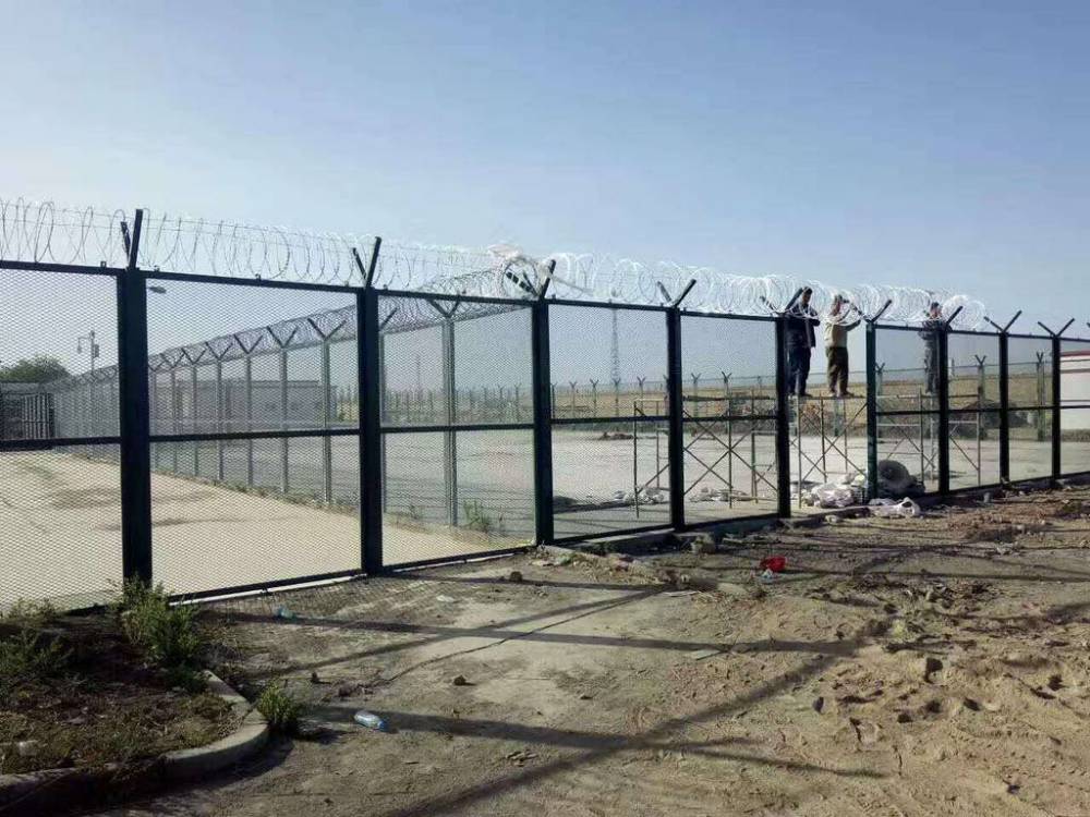 機場是一個對安全性要求高的場所,所以防護欄對于機場而言就是牢固的外墻, 圍界隔離網(wǎng)又稱作“Y型安全防御護網(wǎng)”,是由折彎網(wǎng)片,V型支架立柱,加強型焊接片網(wǎng),上面有刀片刺繩(又稱刀片網(wǎng),刀片護欄)安全防盜連接件組成強度和安全防御性級別很高。被廣泛應用在機場,基地等安全場所。